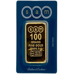 mngm offers 100g minted SAM gold bars with 999.9 purity. Each bar comes with its own unique serial number. You have the choice of having it delivered to you, or storing it securely in our vault, which is fully covered by insurance.
